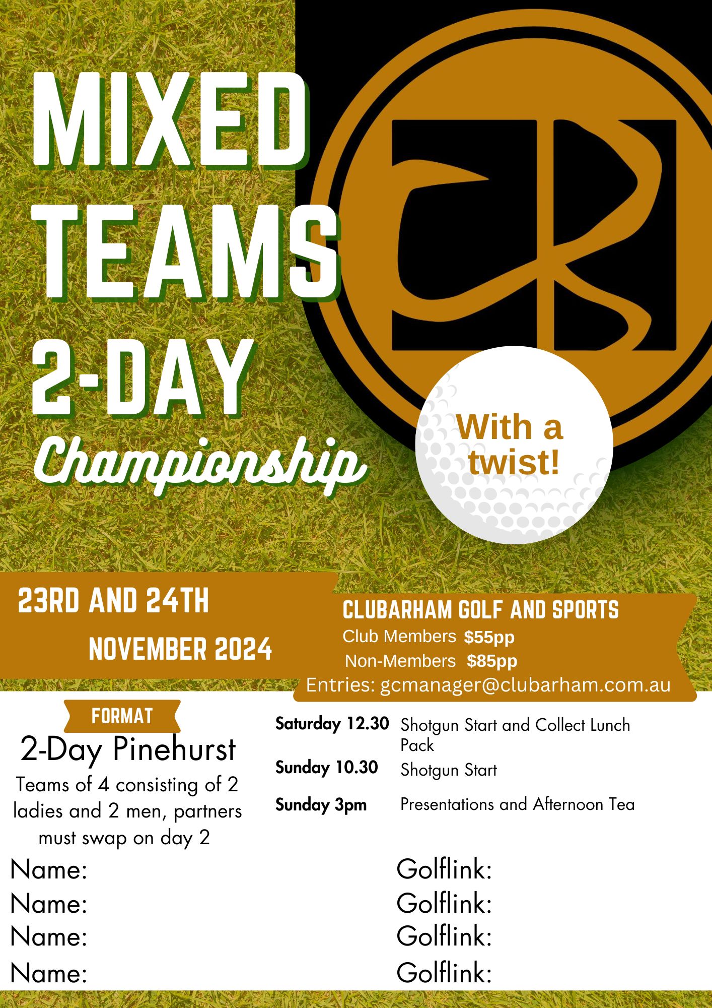 Entries are opening soon for the Mixed 2-Day Pinehurst Championship. Played over November the 23rd and 24th, this is one you won't want to miss.